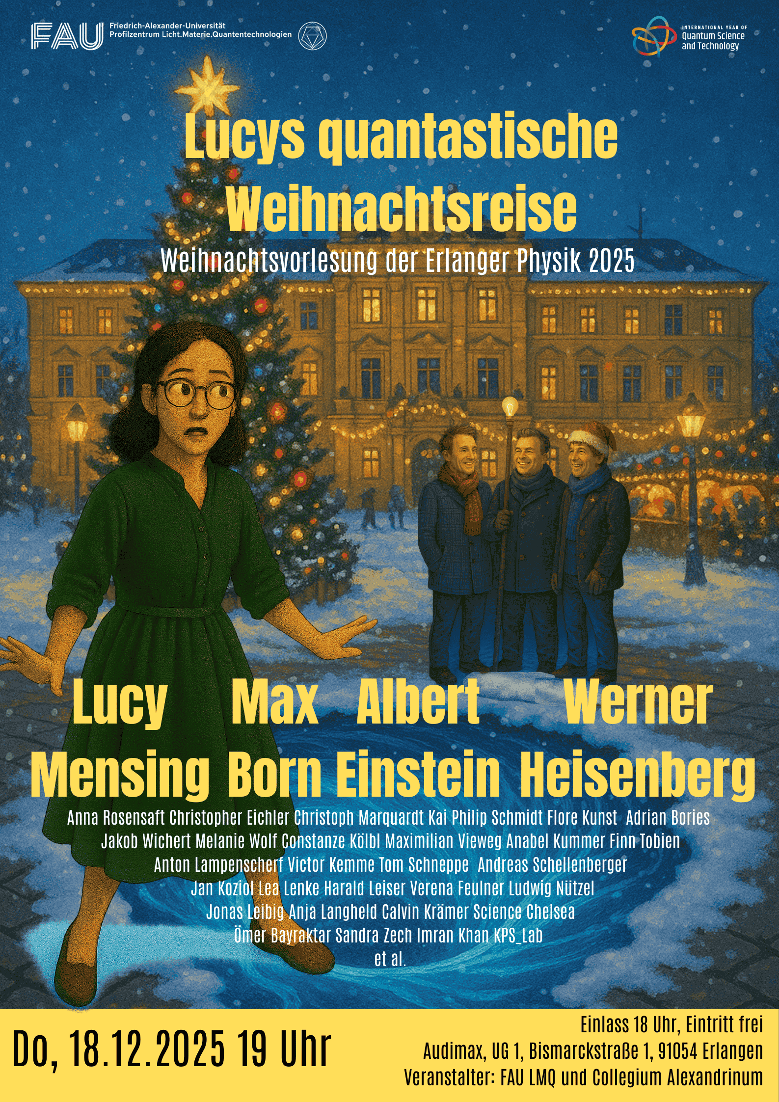 As part of the International Year of Quantum Science 2025, Christopher Eichler, Christoph Marquardt, and Kai Phillip Schmidt from the FAU Profile Center Light.Matter.QuantumTechnologies take the audience on a “quantastic” Christmas journey.